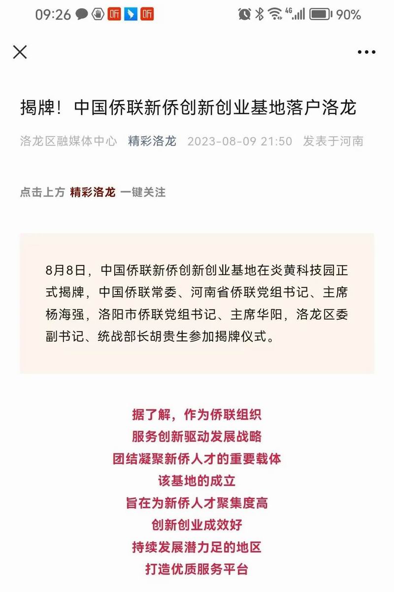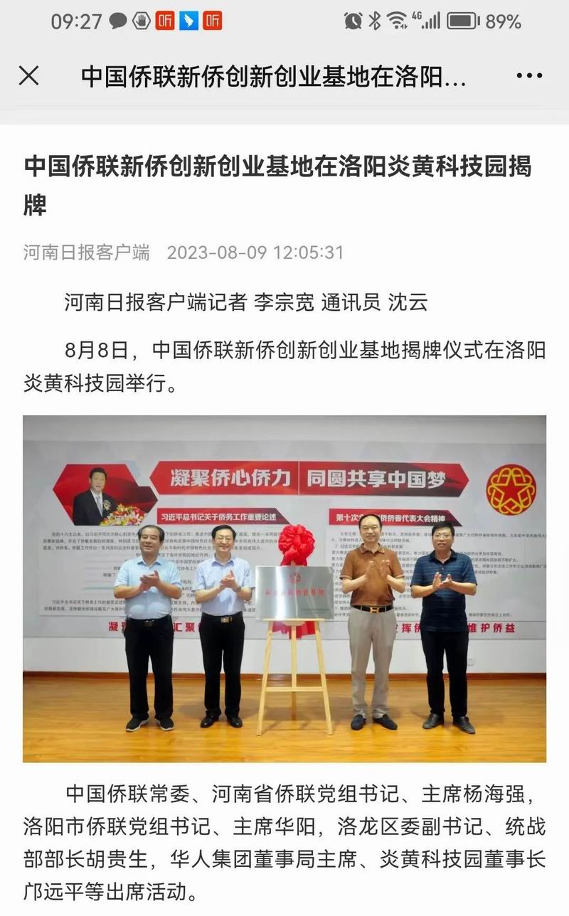 位于洛陽(yáng)市洛龍區(qū)的炎黃科技園,以為僑服務(wù)為宗旨,在園區(qū)打造關(guān)心、愛(ài)心、聯(lián)心、貼心和舒心的“為僑服務(wù)站”,受到各級(jí)僑聯(lián)組織的肯定和贊揚(yáng),被中國(guó)僑聯(lián)認(rèn)定為“新僑創(chuàng)新創(chuàng)業(yè)基地”。近日,中國(guó)僑聯(lián)常委、河南省僑聯(lián)黨組書記、主席楊海強(qiáng)到炎黃科技園調(diào)研指導(dǎo),為中國(guó)僑聯(lián)新僑創(chuàng)新創(chuàng)業(yè)基地炎黃科技園揭牌,引起了廣泛的關(guān)注。